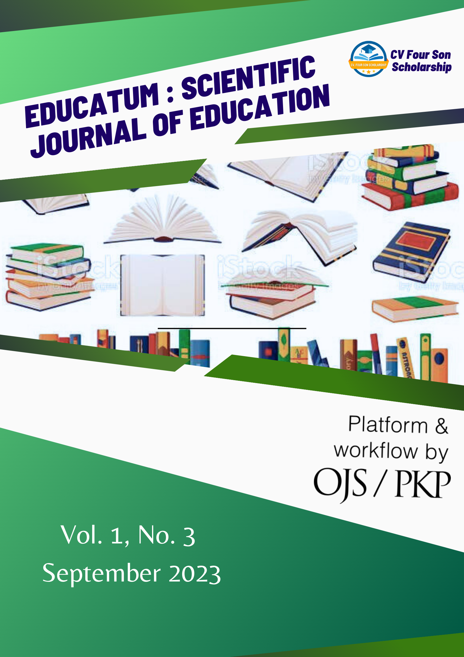 Vol. 1 No. 3 (2023)EDUCATUM: Scientific Journal of Education with ISSN 2986-1667 (Online) and published by Four Son Scholarship is a journal that publishes Focus & Scope research articles, which include Learning and teaching; curriculum development; teacher education; educational technology; educational development; Contains the results of publications or thoughts in the field of education carried out by researchers, teachers and education practitioners.